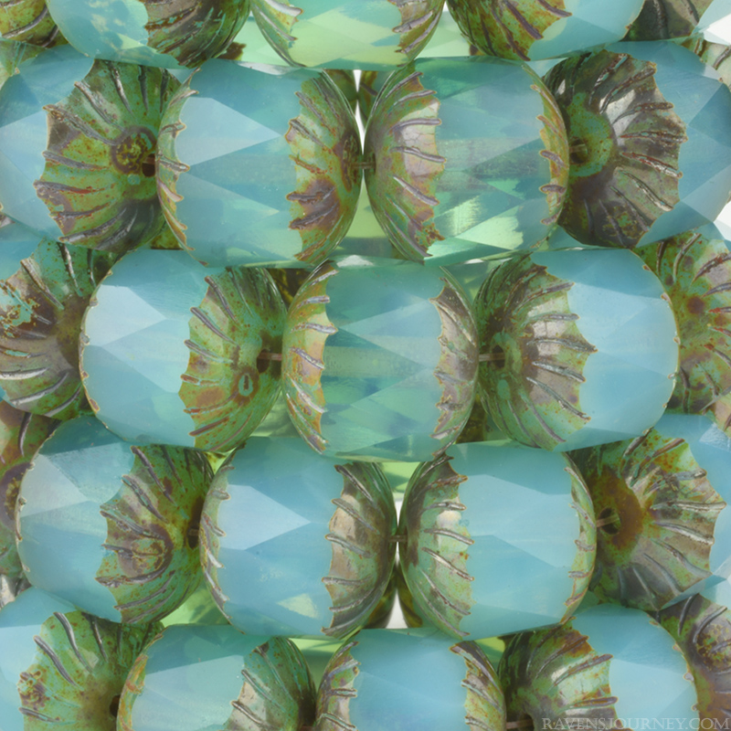 Center Faceted Cruller (10x10mm) Purple Opaline with Grey Picasso Finish5 Strands of 10 Beads per Unit