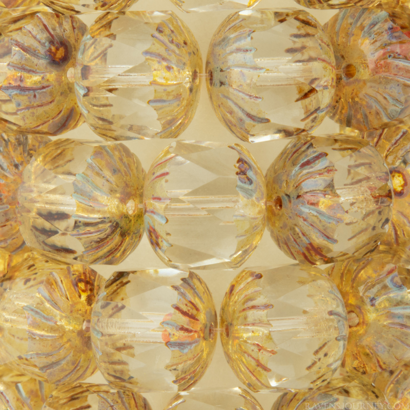 Center Faceted Cruller (10x10mm) Tourmaline Green Transparent with Copper Wash5 Strands of 10 Beads per Unit