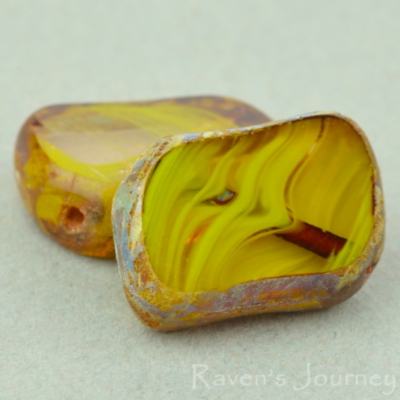 Diagonal Hole Rectangle (14x10mm) Gaspeite Aqua Mix Opaque Transparent with Picasso-osx15 Strands of 10 Beads per Unit