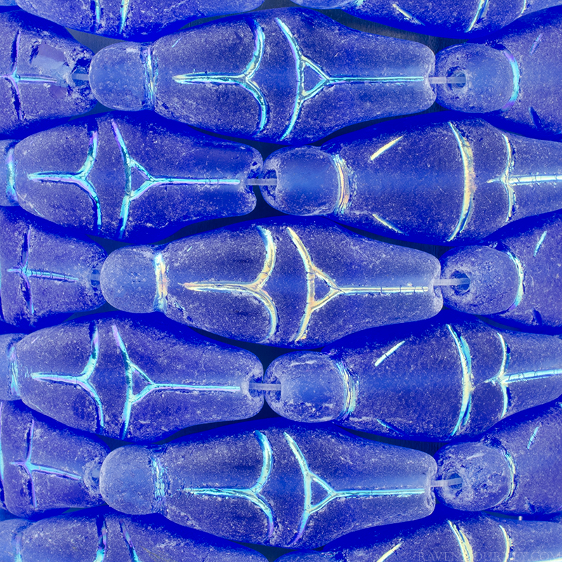Goddess (25x10mm) Aqua Blue Transparent Matte with Iridescent Two Sided Finish10 Strands of 6 Beads per Unit