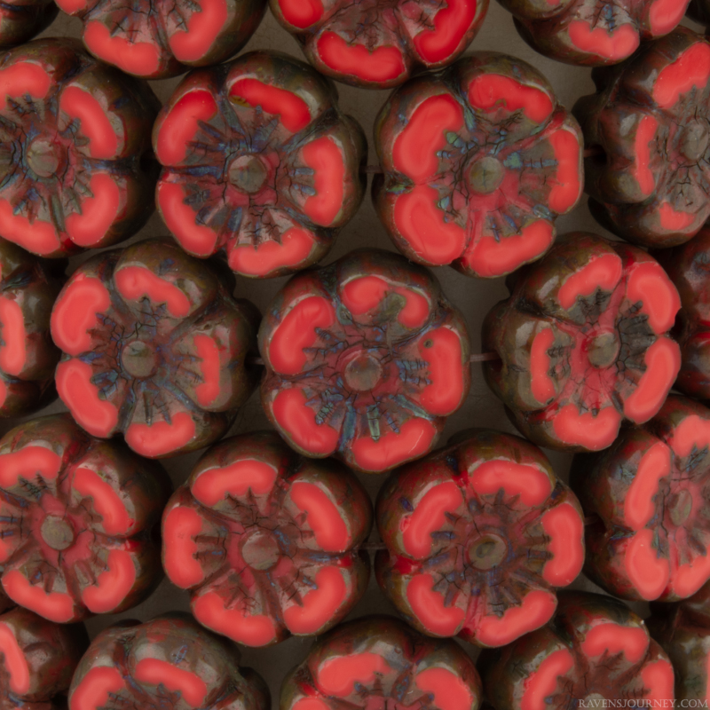 Hibiscus Flower (10mm) Light Turquoise Opaque with Picasso and Aurora Borealis Finish10 Strands of 12 Beads per Unit