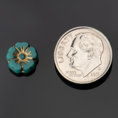 Hibiscus Flower (10mm) Light Turquoise Opaque with Picasso and Aurora Borealis Finish10 Strands of 12 Beads per Unit