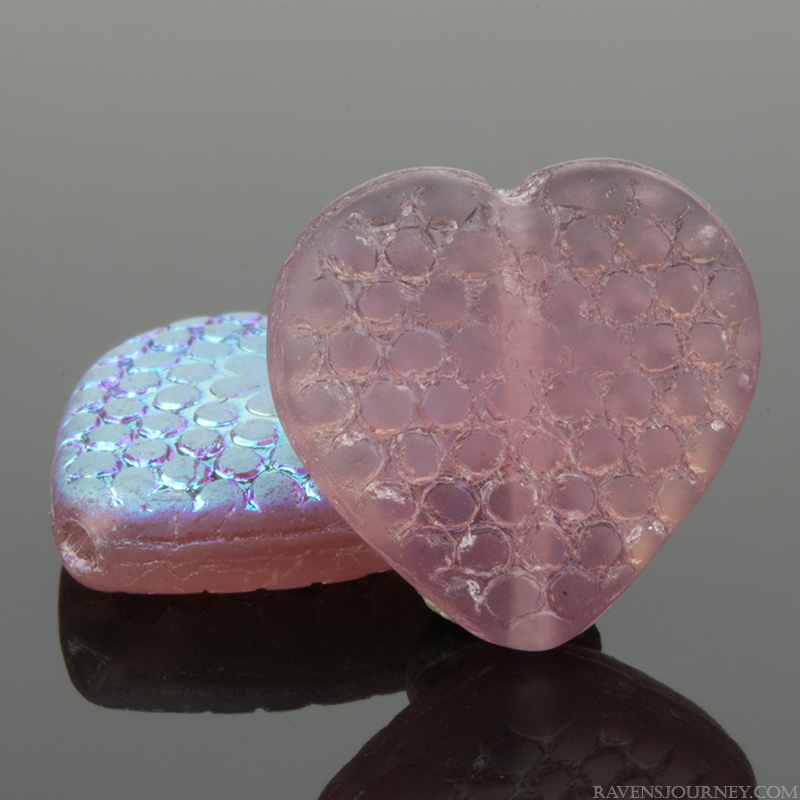 Small Heart (6mm) White Ivory Opaque with Pink and Gold Vitrail Metallic Finish12 Strands of 50 Beads per Unit