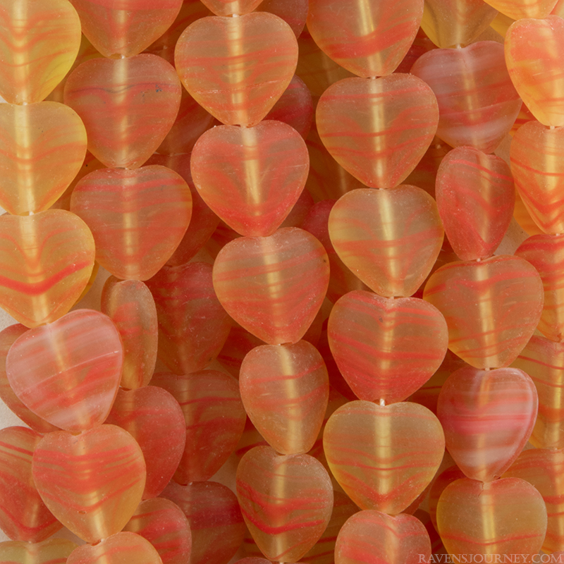 Small Heart (6mm) White Ivory Opaque with Pink and Gold Vitrail Metallic Finish12 Strands of 50 Beads per Unit