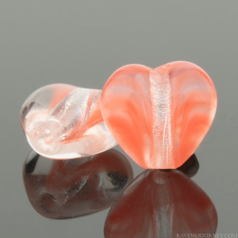 Small Heart (6mm) White Ivory Opaque with Pink and Gold Vitrail Metallic Finish12 Strands of 50 Beads per Unit