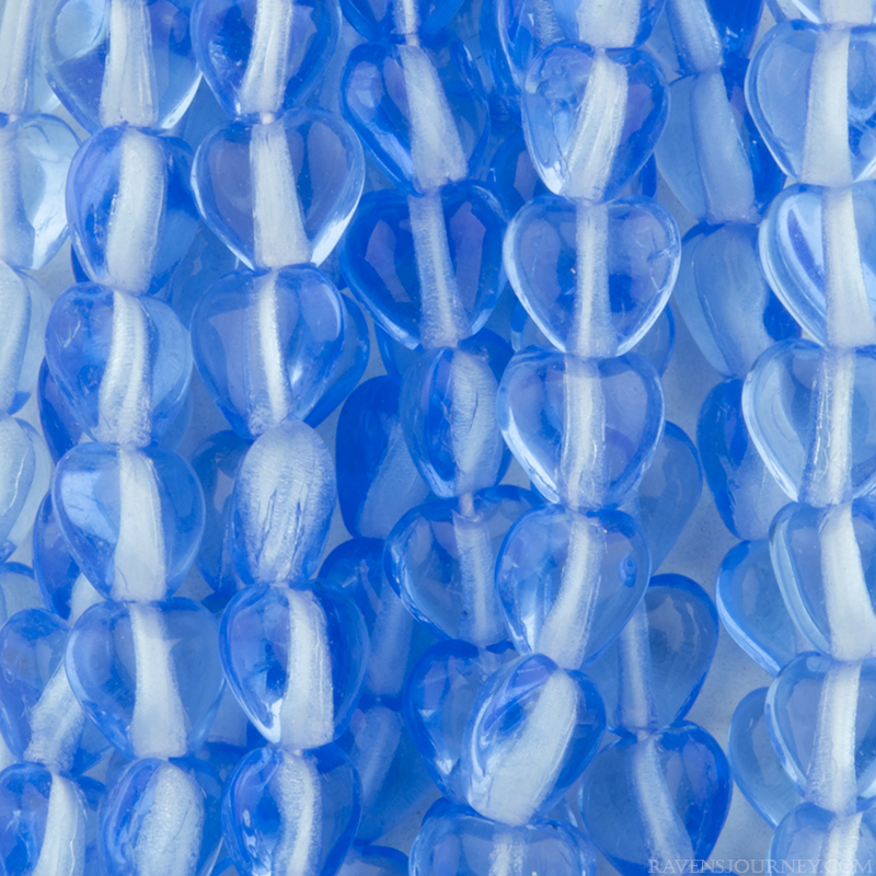 Small Heart (8mm) Sapphire Blue Transparent with Aurora Borealis Finish12 Strands of 25 Beads per Unit