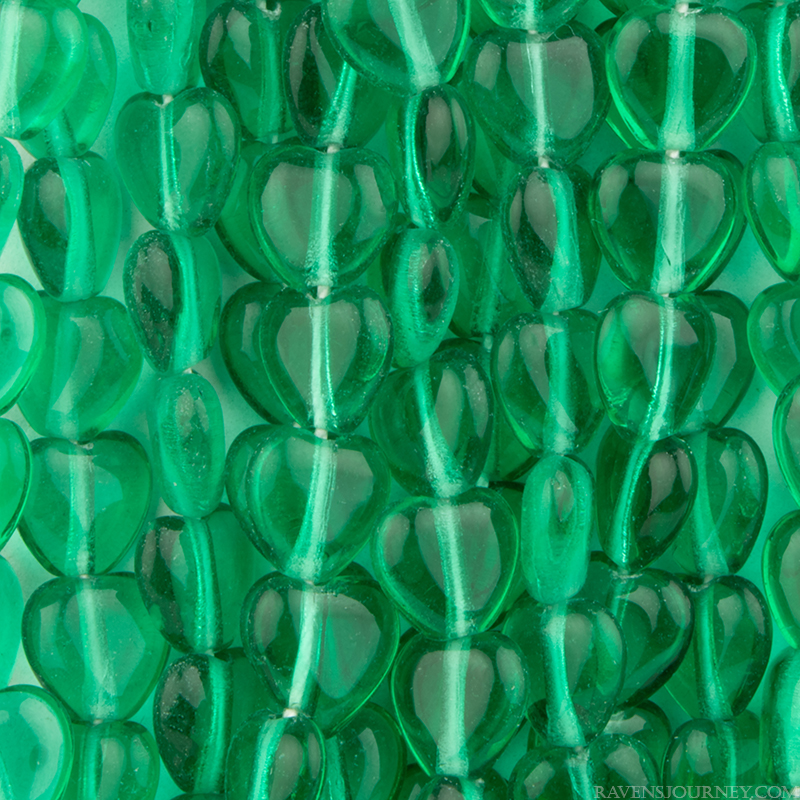 Elongated Heart (17x13mm) Green with Crystal Transparent and White Stripe Mix100 Loose Beads Per Unit