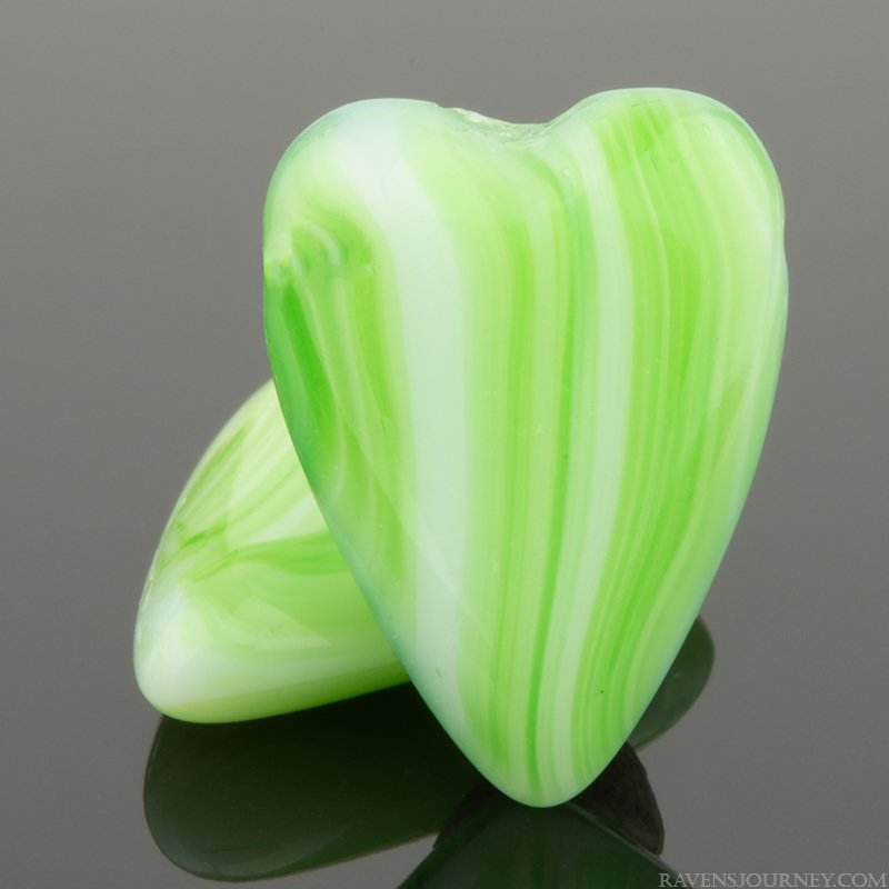 Small Heart (8mm) Light Sage Green Transparent Luster on "Crackled" Glass12 Strands of 25 Beads per Unit