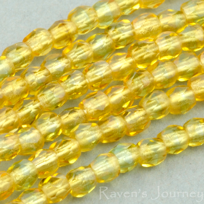 Round Faceted (3mm) Amber and Green Uranium Mix Transparent-osx