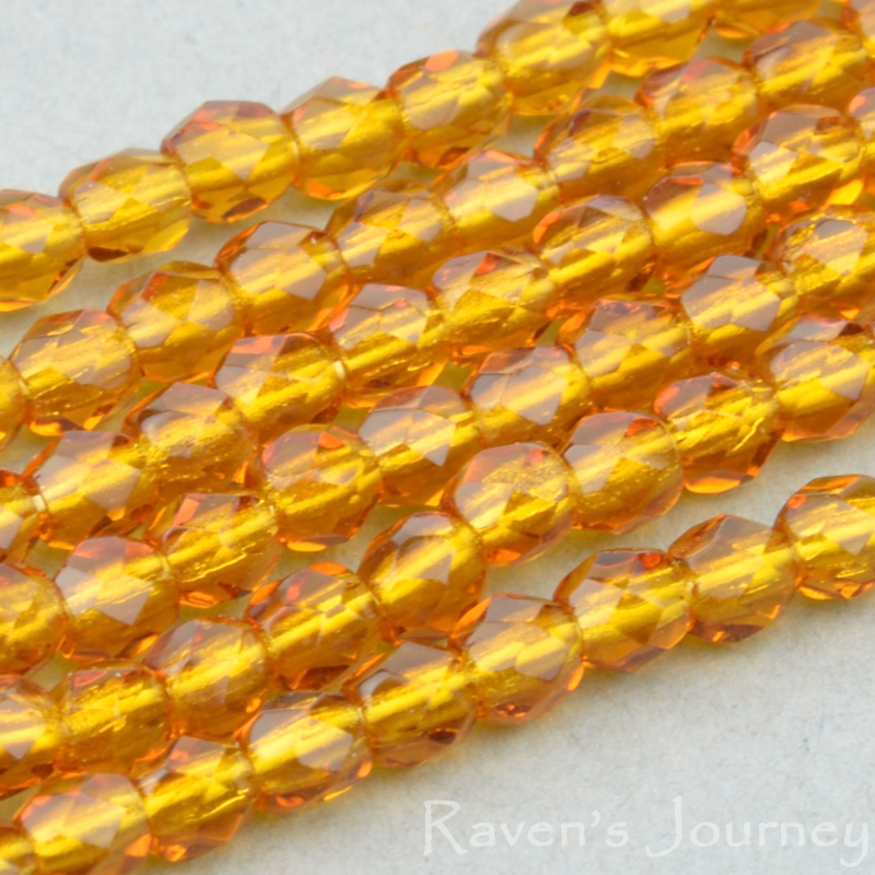 Round Faceted (3mm) Amber Transparent-osx