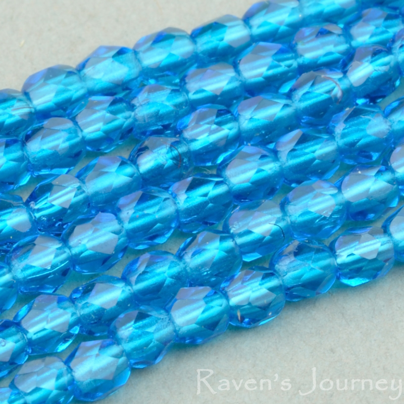 Round Faceted (3mm) Aqua Transparent-osx