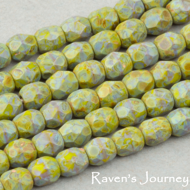 Round Faceted (3mm) Gaspeite Green Opaque with Picasso-osx