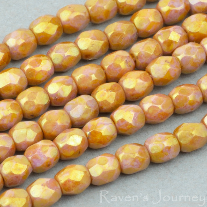 Round Faceted (3mm) Bone Opaque with Picasso, 23 Strands of 50 Beads per Unit *Last Unit Remaining*23 Strands of 50 Beads per Unit