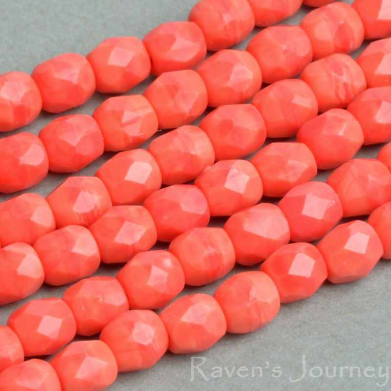 Round Faceted (3mm) Orange Opaque