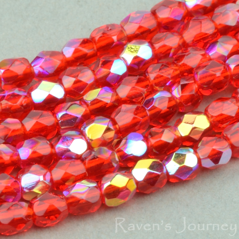 Round Faceted (3mm) Red Ruby Transparent with AB 2