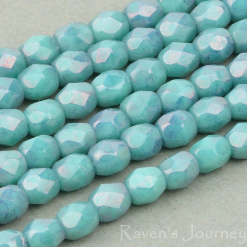 Round Faceted (3mm) Turquoise Opaque with Purple Luster