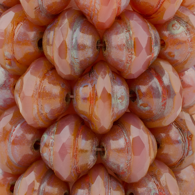 Saturn (8x10mm) Vintage Pink Opaline with Blue Picasso Finish