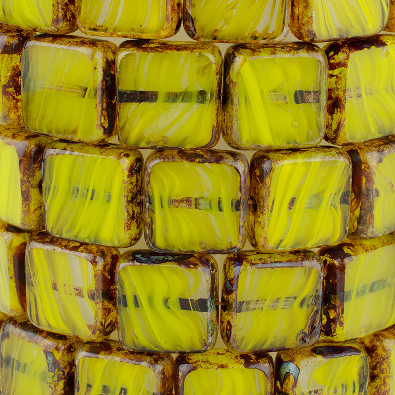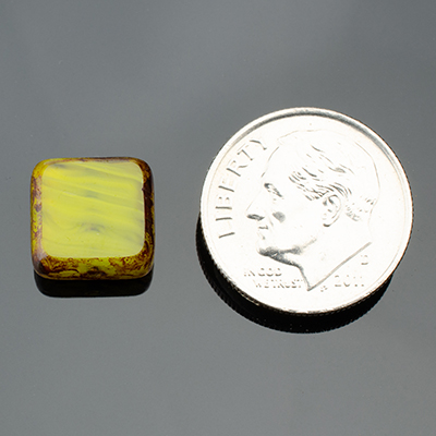 Square (11mm) Gaspeite Olivine Mix Opaque Transparent with Picasso 2-osx10 Strands of 15 Beads per Unit