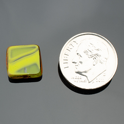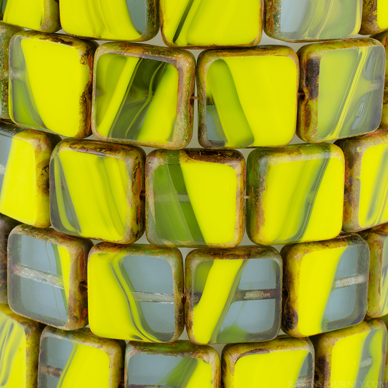 Square (11mm) Orange Ivory and Olivine Striped Mix Opaque with Picasso-osx10 Strands of 15 Beads per Unit