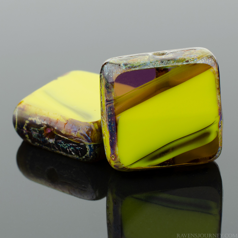 Square (11mm) Amber Purple White Mix Opaque Transparent with Picasso10 Strands of 15 Beads per Unit