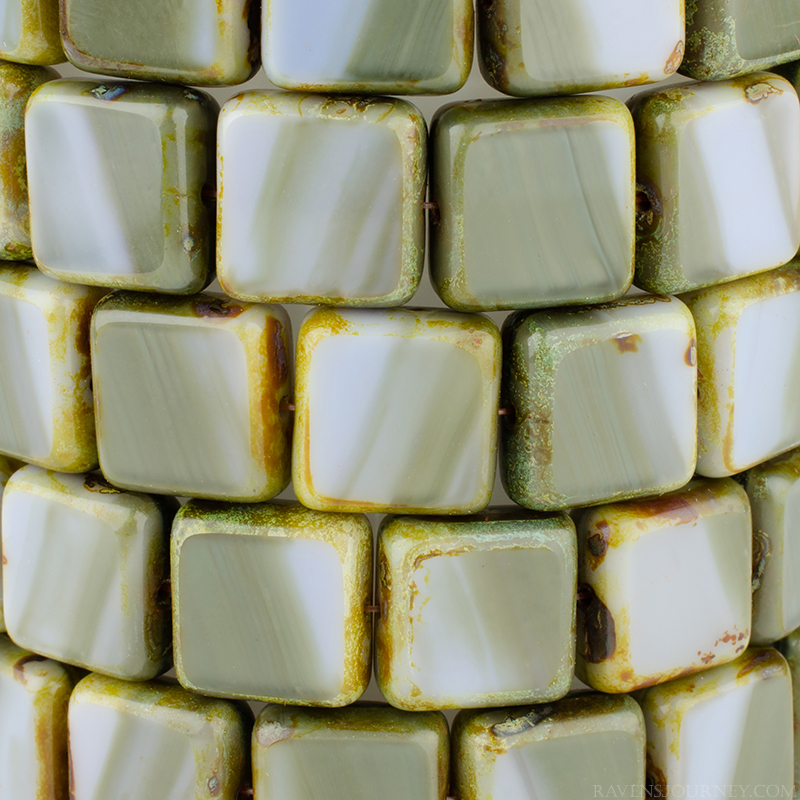 Square (11mm) Green Turquoise Amber Mix Opaque Transparent with Picasso10 Strands of 15 Beads per Unit