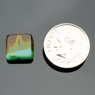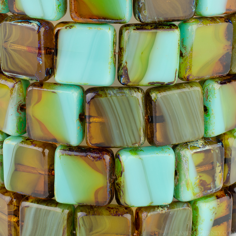 Square (11mm) Gaspeite Olivine Mix Opaque Transparent with Picasso 2-osx10 Strands of 15 Beads per Unit