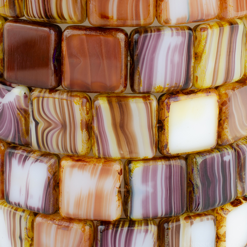 Square (11mm) Purple White Orange Mix Opaque Transparent with Picasso-osx10 Strands of 15 Beads per Unit