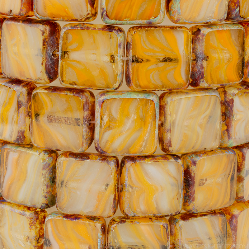 Square (11mm) Orange Crystal Grey Mix Opaque Transparent with Picasso-osx10 Strands of 15 Beads per Unit