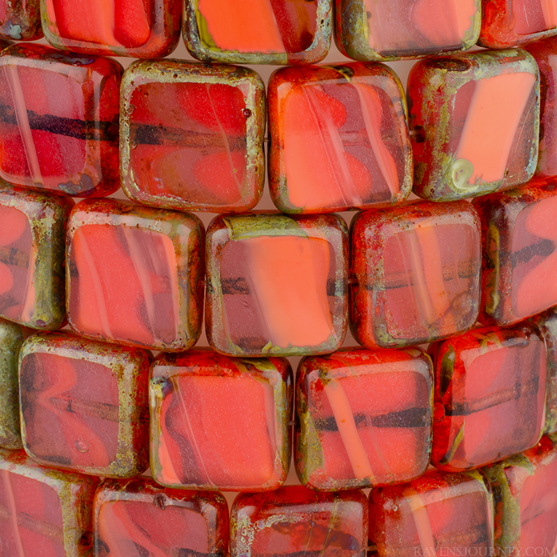 Square (11mm) Purple Orange White Mix Opaque Transparent with Picasso-osx10 Strands of 15 Beads per Unit