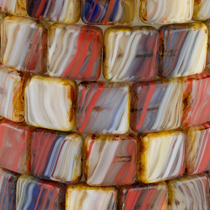 Square (11mm) Green Turquoise Amber Mix Opaque Transparent with Picasso10 Strands of 15 Beads per Unit