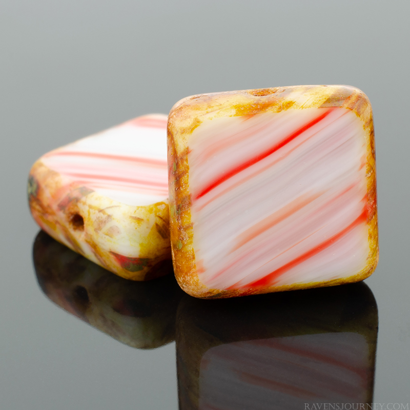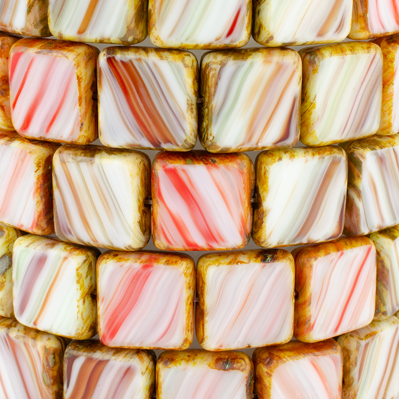 Square (11mm) Purple White Orange Mix Opaque Transparent with Picasso-osx10 Strands of 15 Beads per Unit