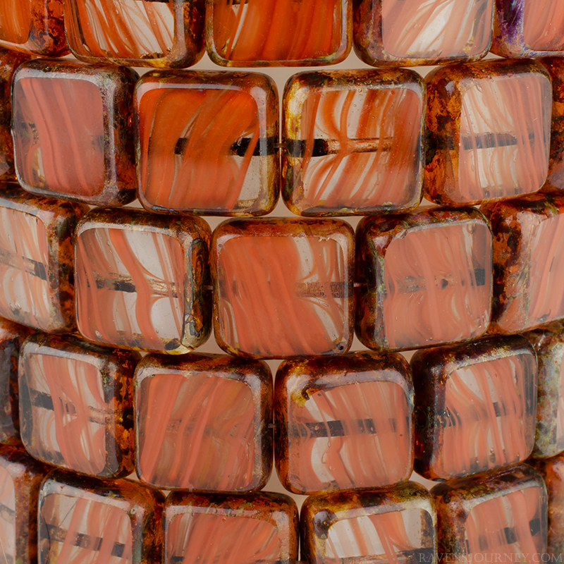 Square (11mm) Orange Crystal Grey Mix Opaque Transparent with Picasso-osx10 Strands of 15 Beads per Unit